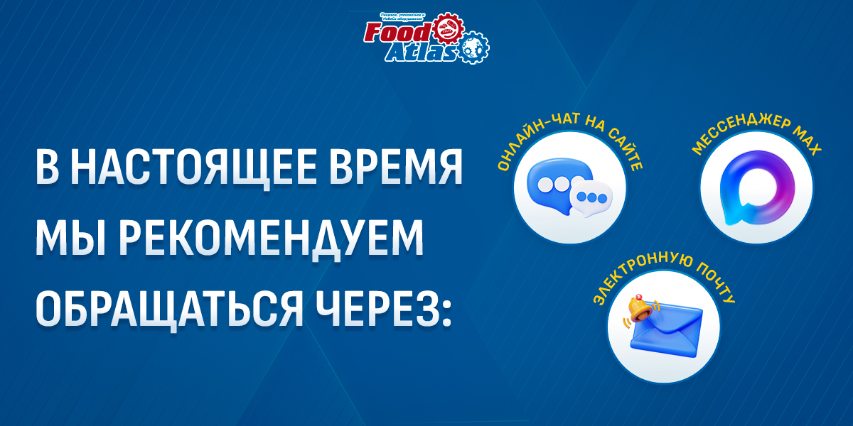 Для быстрого решения ваших вопросов рекомендуем писать в онлайн-чат на сайте, мессенджер Max или на почту. Обращаем внимание, что в WhatApp и Telegram возможны задержки. Спасибо за понимание!
