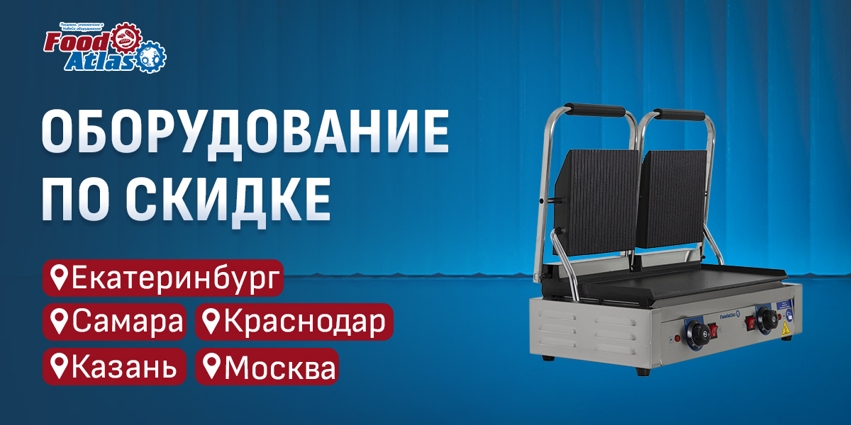 Скидки на оборудование Foodatlas со складов в 5 городах РФ до 31 марта. Более 300 позиций: льдогенераторы, пресс-грили, жарочные поверхности и упаковщики. Выберите технику для ресторана или магазина. Уточняйте наличие у менеджеров!