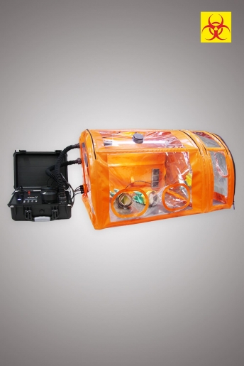 Бокс представляет собой мобильную складную конструкцию, предназначенную для организации отдельных рабочих мест в полевых условиях. В сложенном виде упаковывается и транспортируется в защитной сумке. Бокс изготовлен методом высокочастотной сварки (ТВЧ) с дополнительной герметизацией швов лентами с применением технологии высокотемпературного «сращивания» (соединения).