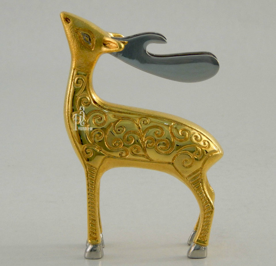 Оригинальный сувенир - "открывашка" - выполнен ограниченной серией. Фигурка выполнена в технике художественного литья с покрытием золотом. Рога изготовлены из нержавеющей стали.
