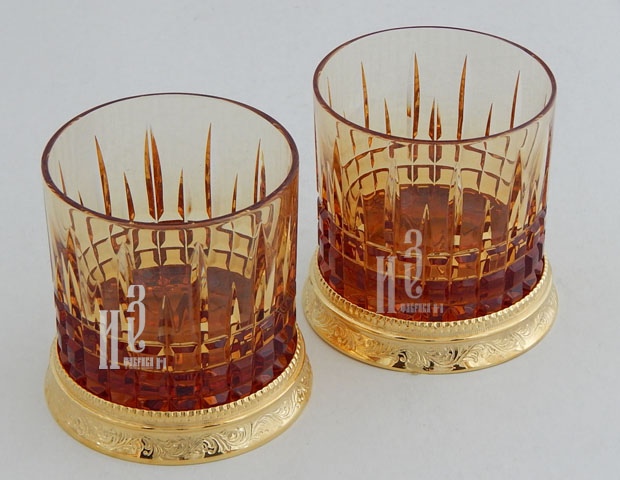 Бокалы изготовлены совместно с заводом мальцовского хрусталя (г. Гусь-Хрустальный). Основание выполнено из ювелирного сплава и покрыто золотом 999 пробы.